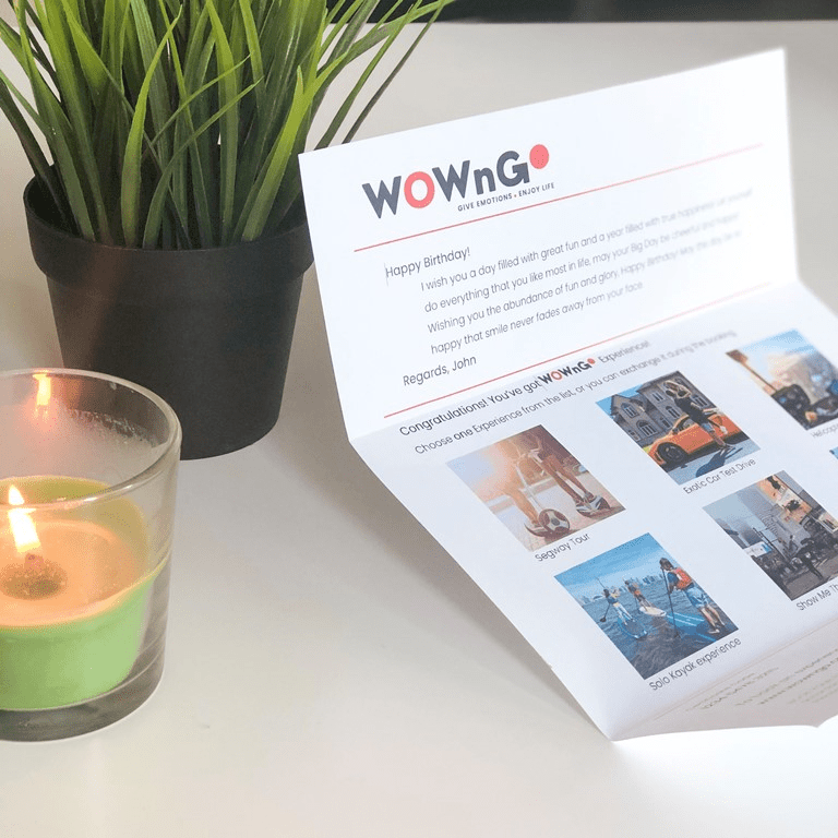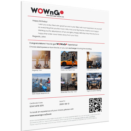 Gift recipient will get a Voucher which can be redeemed for any experience from WOWnGO catalogue
